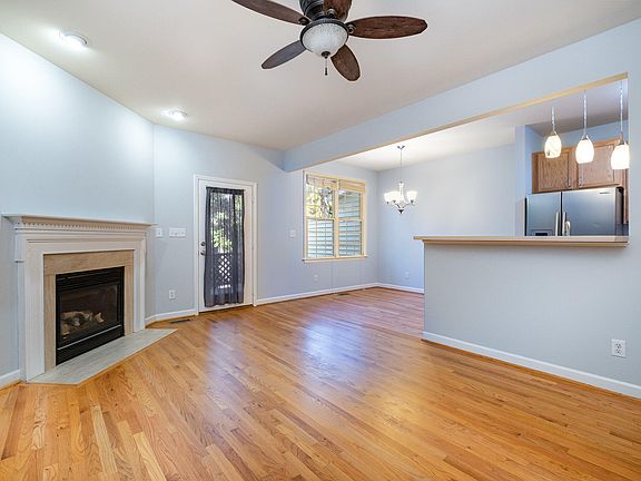 Beautifully maintained 2-bedroom townhome in the desirable Meadowood Crossing community! This home features a two-story foyer, hardwood floors on main level, and 9-foot ceilings. The first floor offers an open layout with a spacious living room, complete with a gas fireplace, flowing into a bright dining area and kitchen. The spacious primary suite features a vaulted ceiling, a large walk-in closet, and an ensuite bathroom with a double vanity, separate tub, and shower. The second bedroom offers its own private bath and walk-in closet. Private deck backing to the woods; One-car garage; Freshly painted; Walking distance to Lake Johnson and conveniently close to Cary, NC State, and I-40. Community pool!