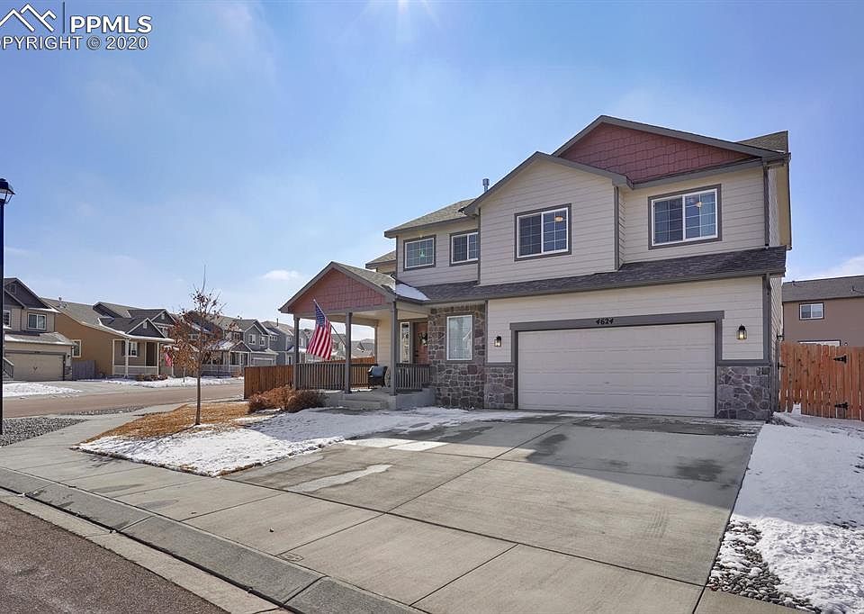 This 2 story, 3 bedroom, 2.5 bath, oversized 3 car tandem garage home built in 2014 is located in the quiet community of Painted Sky at Waterview. The main level features vaulted ceilings, open floor plan with a spacious living room that opens directly to the kitchen/dining area, powder room and direct access to garage. The stairway to the second story adds to the spacious area in the front of the home and overlooks the living room and entry. Situated on one of the larger corner lots in community with fenced in back yard. Walk in under a front covered porch into a bright home with a ton of natural sunlight. The 2 story living/great room has a wonderful wall of windows and the main level is an open concept floor plan. The large island in the kitchen adds extra cooking and storage space or add some stools for friends to congregate around. There is a gas range, side by side fridge with water and ice dispenser and a pantry. Walk-out to the huge fenced in back yard complete with a storage shed and a built in beautifully pavered surround fire pit. There is main level access to the attached tandem 3 car garage with extra work bench space and epoxy flooring. All 3 bedrooms, the laundry room and 2 full baths are located on the second story. The spacious master en suite boasts a walk in closet, large tile surround soaking tub, a stand alone shower and double vanity sinks. Need additional living space? There is room to expand in the fully unfinished basement or use it for additional storage! This home is immaculate near military installations, off the Powers corridor close to shops and restaurants and the airport! You don't want to miss this gem!