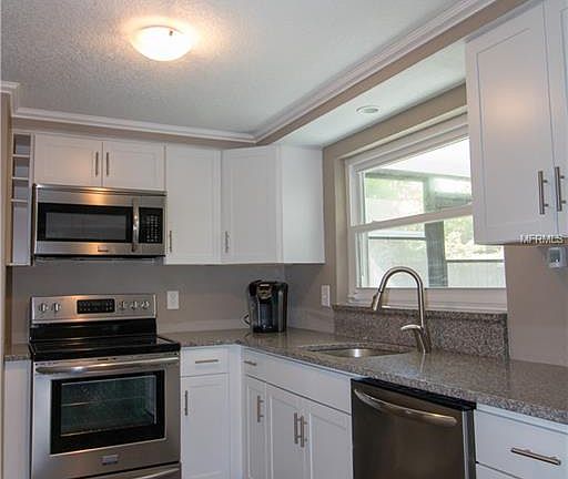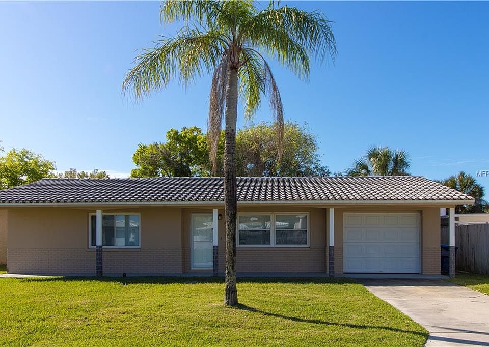 This beautiful turn-key home was just renovated in the highly sought-after waterfront community of Gulf Harbors. The exterior is freshly painted, and features a brand new flat roof, along with a freshly screened back patio. Follow it out to an over-sized backyard perfect for grilling, playing, and entertaining. The inviting interior offers a freshly painted, warm neutral palette, brand new upgraded flooring throughout, crown molding in the main living areas, and spacious bedrooms. The bathroom boasts a designer vanity, and coordinating mirror. The kitchen is equipped with all new stainless appliances, granite countertops, and custom cabinetry. The home also offers a brand new A/C unit and new water heater. You are minutes away from a private beach reserved for community residents. The Gulf Harbor lifestyle offers an active Civic Center, fishing clubs, boating and sailing clubs, and hosts a multitude of community events! Minutes from fine dining, shopping, and more! *All room sizes are approximate and to be verified by buyer*