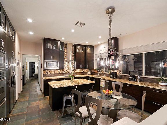 Quite simply the most popular and desirable plan in Desert Ridge, the incomparable Laguna by Shea Homes! This stunner shines w/ amazing features starting w/ an over the top remodeled gourmet kitchen highlighted by state of the art appliances, double ovens, double microwaves, huge built in side by side fridge, pull out pantry shelving, walk in pantry, slab granite counters, custom cabinets and more! The split floorplan rocks w/ the master retreat separated by the full living and dining rooms. Single level and model perfect it checks all the boxes with 4 bedrooms, 3 car garage, N/S exposure, huge lot and a sparkling play pool surrounded by lush landscaping and huge covered patio. Desert Ridge is the place to be w/ world class dining, shopping, golf, parks, trails and incredible schools!