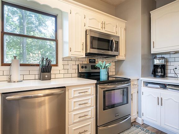 You'll catch all the farmhouse vibes at this beautiful home! Completely remodeled ranch over basement. The Magnolia-inspired kitchen offers solid surface countertops, new appliances and subway tile backsplash. New bathroom vanities, flooring and paint throughout. Lower-level family room is complete with a fireplace and walk-out basement. All of this on a large, wooded lot with mature trees in the desirable Woodland Acres neighborhood.