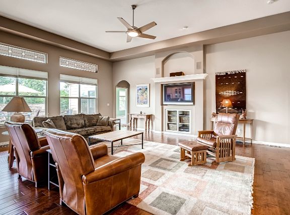Amazing Ranch in popular REDLEAF.This 5 bedrm/5 bathrm offers a fabulous open floorplan.The sizable main flr master includes a 5-pc bathrm,a large walk-in closet & doors leading out to the custom flagstone patio.The huge great rm has fig birch wood flrs,soaring ceilings,gas fireplace & a wall of windows overlooking the patio.The gourmet kitchen offers S/S appls,42" maple cabinets,tile flr,slab granite,a large island & eating area.There's also a frml dining rm,perfect for entertaining.The main flr also has 2 additional bedrms & a dedicated study.The professionally finished bsmt was over $100K & is an entertainers dream!The wet-bar has 42"cherry cabinets & marble/wood countertops.The media area includes a 3-way fireplace & has been wired for surround sound.You'll find 2 more huge bedrms w/a jack-n-jill bathrm+a powder rm for guests.The yard is 1/3 of an acre & is an enchanting escape w/the private patio,mature trees & veggie planters. This Beauty also has a 3 car garage & solar panels.