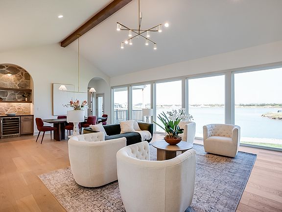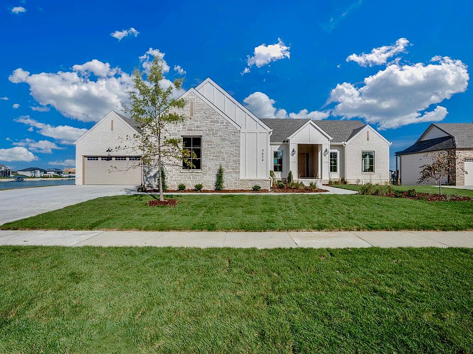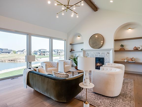 Welcome to lakeside luxury at its finest. Situated on a breathtaking lakefront lot in the highly coveted Castaway community, The Modesto Plan by Sharp Homes combines timeless elegance from the homes of yesterday, with the modern luxury features and finishes you expect in a home today. From the moment you arrive, the classic elevation accented with natural stone makes a stunning first impression. Step through the arched entryway and into a warm and inviting living room where vaulted beamed ceilings, a gas fireplace, and floor-to-ceiling windows frame show-stopping views of the sparkling lake. Thoughtfully designed arched niches with custom cabinets and floating shelves add a touch of elegance and character. The seamless indoor-outdoor living design includes a large covered deck and an expansive lanai with a second gas fireplace and overhead garage door—perfect for unforgettable gatherings and legendary garage parties. In the kitchen, no detail has been overlooked. Enjoy a spacious island, gas range, granite countertops, custom wine bar, butler’s pantry with bonus workspace, and a dedicated Costco closet for optimal storage. The primary suite is a private sanctuary featuring vaulted, beamed ceilings, dual vanities, a freestanding soaker tub nestled in a graceful arched niche, a fully tiled shower, and a massive walk-in closet complete with a granite-topped dresser and direct access to the laundry room. A discrete pocket office with built-in desk is tucked away just off the main living space—ideal for working from home. Additional main floor bedrooms each include walk-in closets; one offers a private ensuite, while the other enjoys access to a full hall bath. The fully finished lower-level walks out at grade to your private beach area and boasts a sprawling family room with panoramic lake views, an elegant wet bar, and direct access to a full bath from the back of the home—perfect for a day spent on the beach or out on the boat. Two additional bedrooms downstairs each offer cavernous walk-in closets and private bath access. The basement also includes two large storage areas, with one ideal for a future home gym. All of this, located in Castaway, Wichita’s premier lakeside community featuring a 135-acre spring-fed surf lake, lakefront clubhouse and pool with neighborhood beach area, playground, basketball court, and some of the most incredible views in the city! Start calling Castaway home in the incredible Modesto Plan by Sharp Homes. Some information may be estimated and is not guaranteed. Pricing is subject to change without notice. Please verify schools with USD 266.