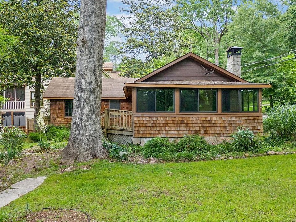 Delightful Pine Lake Cedar Shake Cottage located across the street from the Lake! Beautiful Hardwood Flooring, Living Room with Stone Hearth FP and gas logs for warm cozy nights, and built in shelving and bookcases. Main BR is light filled and very spacious with a large walk-in closet and a custom built ladder to reach the loft storage space. The Bath features a walk-in shower with ceramic tile, and a vanity with a copper sink. Enjoy your morning coffee on the 3 Season front porch, then head to the Detached Workshop/Garage perfect for an artist retreat. The corner lot has mature shade trees and seasonal plantings. Take a stroll to the lake, Clubhouse, beach, and all the wonderful things that the Pine Lake Community has to offer!