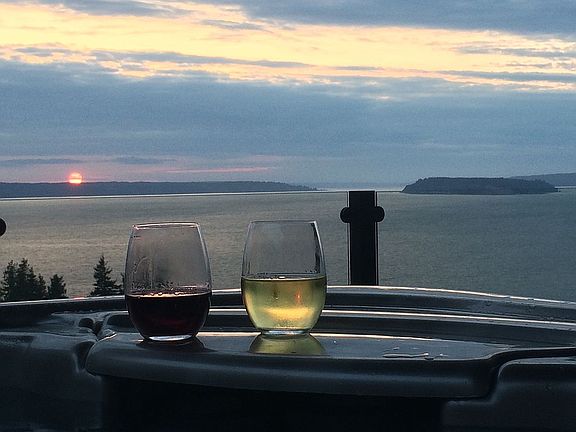 Private gated entry. Amazing views throughout the home. Penthouse feel. Modern/Contemporary. Main level entry with tall ceilings & open floor plan. Porcelain 24x24 tile throughout. Spacious entry, tall ceilings & doors, sprinkler system throughout home, Emtek handles, living room with large viewing windows with motorized blinds and a Napoleon linear gas fireplace. A stone waterproof covered decks with french doors, heaters, gas, irrigation, cedar soffits & infinity topless railing. A large kitchen with metal/frosted glass floating cabinets, a large L-island with Silestone counters & seating, induction cooktop, coffee area with separate sink, LED multi-colored lighting in multiple rooms, wine room/bar & seating with built in wine shelving and floating counter, wine barrel flooring, powder room with floating counter, master bedroom with motorized blinds & office separated, master bathroom with Petra Antiqua-honed heated marble/limestone, master walk-in closet, walk in shower, soaking tub with ceiling mount bath filler faucet, deck with hot tub off master bath, floating counter. Large laundry room with sink, pass through laundry cabinet to master bath, custom cabinetry throughout the home, mud area/garage entry seating. Large pendant lighting above stairway. Can lighting throughout home. Downstairs includes: 2 large bedrooms with walk in closets, 2 full bathrooms. 2nd laundry room, sauna, storage room, living room with covered patio, and a 2nd kitchen area. Irrigated manicured yard with lighting. Wayne Dalton frosted glass garage doors. Security system, On-Q smart panel. Motor home parking on grass grid area. Many more details not listed.