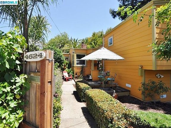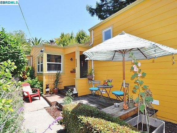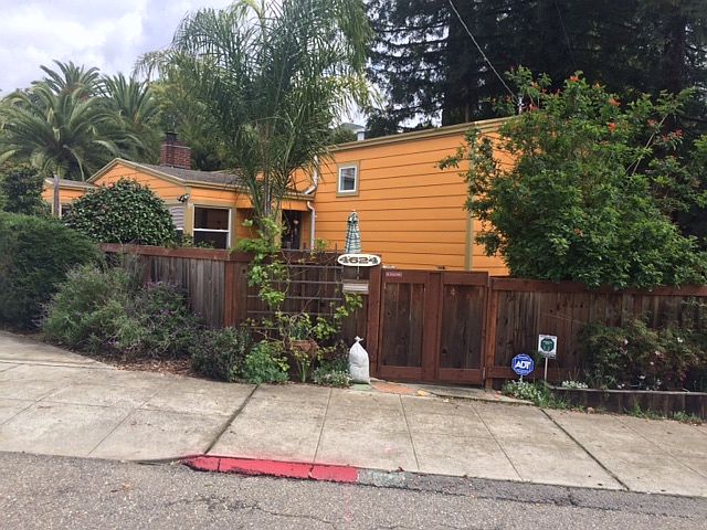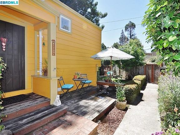 Cozy and charming Cottage with good floorplan. Wood floors, vaulted beamed ceiling and brick fireplace in living room. Remodeled kitchen with adjoining dining area. Both bathrooms remodeled. Lovely yard, landscaping, fruit trees and fenced yd. Secluded rear yard w/deck. Has an artistic flair