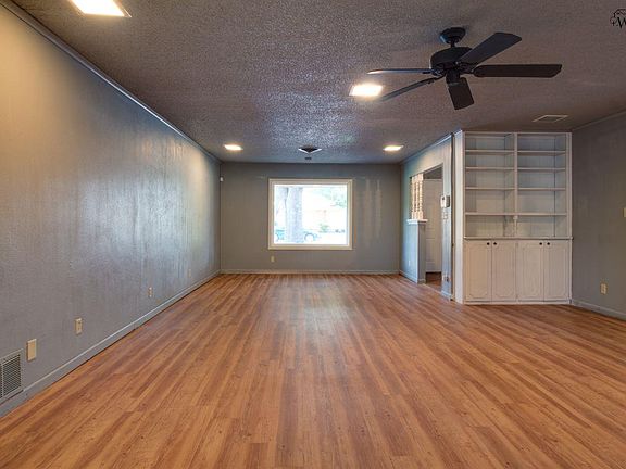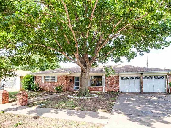 Spacious 3 bedroom, 2.5 bathroom home with a 2 car garage. Open living room with high ceilings and brick fireplace. Kitchen opens into eat-in breakfast area, separate utility room. Large covered patio with 20x20 Studio and above ground storm shelter. New AC and water heater 2015. New roof, new interior doors, garage doors, new texture, and paint, updated Cabinets, new, stamped concrete patio, new privacy fence. Sprinkler system updated electrical lighting.