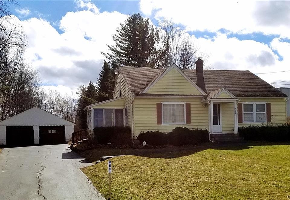Lovely one owner Cape sits on over 1.5 acres and just a short jog to the YMCA! Eat-in kitchen, large living room and formal dining room. Hardwoods throughout. Extra long 2 car detached garage has potential for a workshop. Newer roof, furnace, water tank and windows. Add your TLC and make it a HOME again!