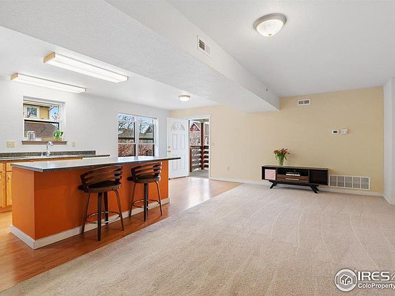 City of Boulder Affordable Home: Located in Holiday, a walking friendly neighborhood. Easy walking distance to parks, local bike trail system, NOBO Art District, retail shops and restaurants, in addition to close proximity to highway 36. This 2 bedroom/1 bath condo on the second level is bright with a spacious open floor plan. Views of the mountains to the West and includes a balcony facing East. Energy saving features include on demand hot water heating and high efficient furnace providing cost effective heating and utilities. Includes a single car space in a shared attached garage with additional storage space. Close to public transportation routes.