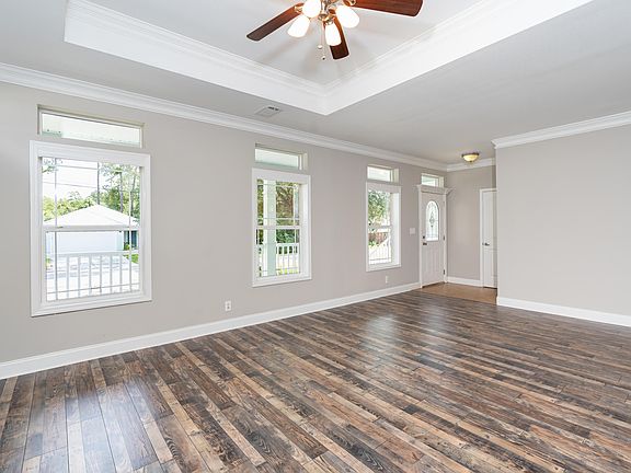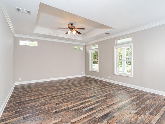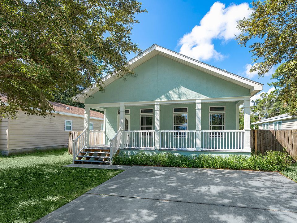 Spacious 3 bedroom, 2 bathroom house offering over 1,700 square feet of living space with a large covered front porch. Close to downtown St. Augustine, World Golf Village and Jacksonville. The kitchen opens up to the living area which is vaulted! Transom windows throughout the home bring in natural light to every room. Master bedroom is spacious with walk in closet with beautiful built-ins. Master bathroom has a soaking tub and a walk-in shower. No HOA.