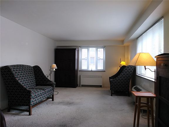 Nice floor plan, light & bright with windows facing in three directions, views of green spaces plus street view. Spacious, open living/dining area. There is a coat closet in the foyer, spacious closets in each bedroom, a linen closet, plus a large storage unit in the basement. Large, bright, and clean laundry facilities in basement. Private parklet in back of building, a hidden treasure! Best location near universities and hospitals, museum and library, Schenley Park. Gated outdoor parking $38.50/mo., indoor $75.00/mo., free guest parking. Staff on-site 24/7. On six bus lines, including to airport.