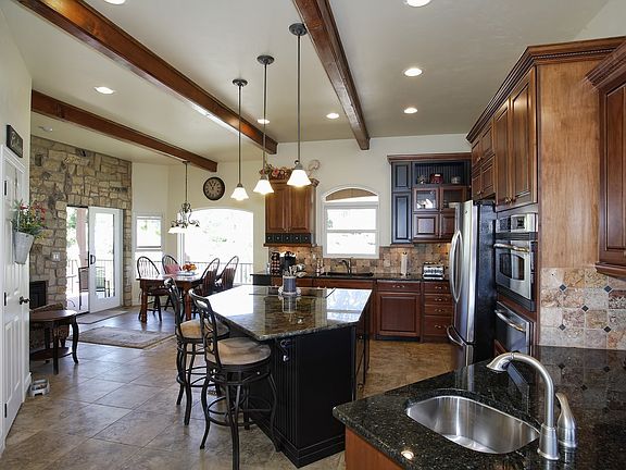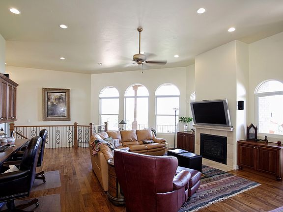 Spacious open floor plan tile entry kitchen and formal dining rich hardwood floors in the great room views from every window main level laundry and guest room main level master suite with huge walkin closet and separate sittingTV room composite decking and outdoor fireplace overlooking the city lights rec room fireplace and wet bar plus theater room downstairs two addtional bedrooms with private baths 2nd laundry area and so much more