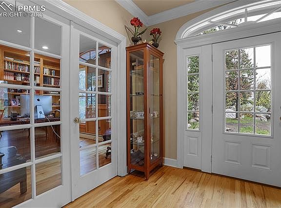 Step into your own Utopia! You will fall in love with this custom home located in the highly desirable and gated community of Penhurst Park! This 2 Story home was designed with timeless elegance and style featuring a delightful outdoor space. The layout showcases a main level Master suite with a gas fireplace, beautiful custom mantle, hardwood floors, crown molding, large window seat, incredible natural lighting, adjoining luxury 5 piece bath with an oversized tub, separate fully tiled shower with seat, dual vanity and spacious walk in closet. The dramatic two story Great Room has a wet bar, gas fireplace, coffered ceiling, tremendous natural light and access to the backyard. The gourmet kitchen will please any chef with loads of granite countertop space, custom natural cherry cabinetry, breakfast bar, oversized farm sink, subzero fridge, induction stove top with retractable vent, double oven, microwave, walk in pantry and access to the outdoor patio space. The expansive formal dining room is perfect for large gatherings. A main level office, large laundry room and powder room complete the main level. The upper level features 3 spacious bedrooms with vaulted ceilings, walk in closets and two full baths. The lower level offers a huge 2nd family room with gas fireplace, wet bar, built in, natural lighting and is adjacent to a fabulous recreation room. The 5th bedroom offers privacy & a huge walk in closet! A full bath, utility room and 24x12 storage room completes the lower level. The outdoor space Feels like Paradise! Enjoy the sights and sounds of nature, breathtaking mountain views, natural boulders, landscaped areas, delightful gardens, peace & privacy! This outstanding location is close to restaurants, country club, shopping, parks, hiking/biking, The legendary Forbes 5 Star Broadmoor Hotel and schools.