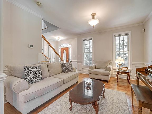 Custom, brick front home with impeccable landscaping! Arched transom over front door! Enter to find a nicely appointed formal living room & elegant dining room. Don't miss the crown molding throughout the first floor. Wonderful open family room to kitchen which features stainless steel appliances and desk area. Family room has beautiful built-ins and fireplace for those cool evenings. This home features hardwoods and beautiful molding detail. 2nd floor has primary room with updated bathroom, 3 bedrooms, a full bathroom and a large bonus room above the garage. 3rd floor has a large attic space for future expansion. The landscaping continues with outside features, wooded lot & Parade of Homes winning courtyard patio! Leaf filter gutter guards, high end water filtration system, along with full yard irrigation system. A must see!