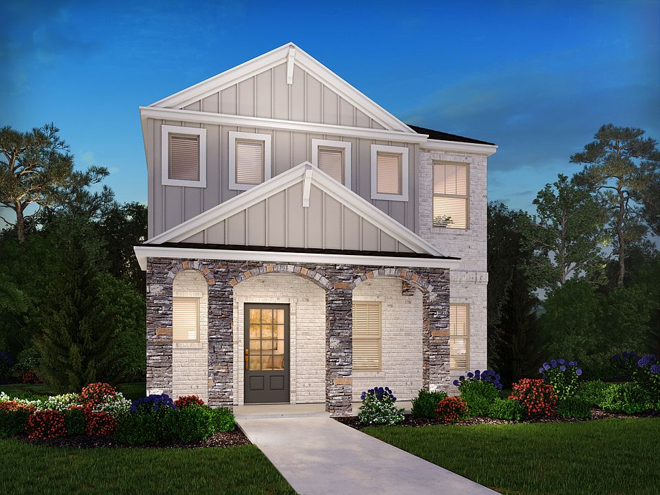 Enjoy movie night in the Tanner's versatile second-story loft. Dual sinks and a walk-in closet in the primary suite streamline busy mornings. Downstairs, the kitchen island overlooks the open dining and great rooms.