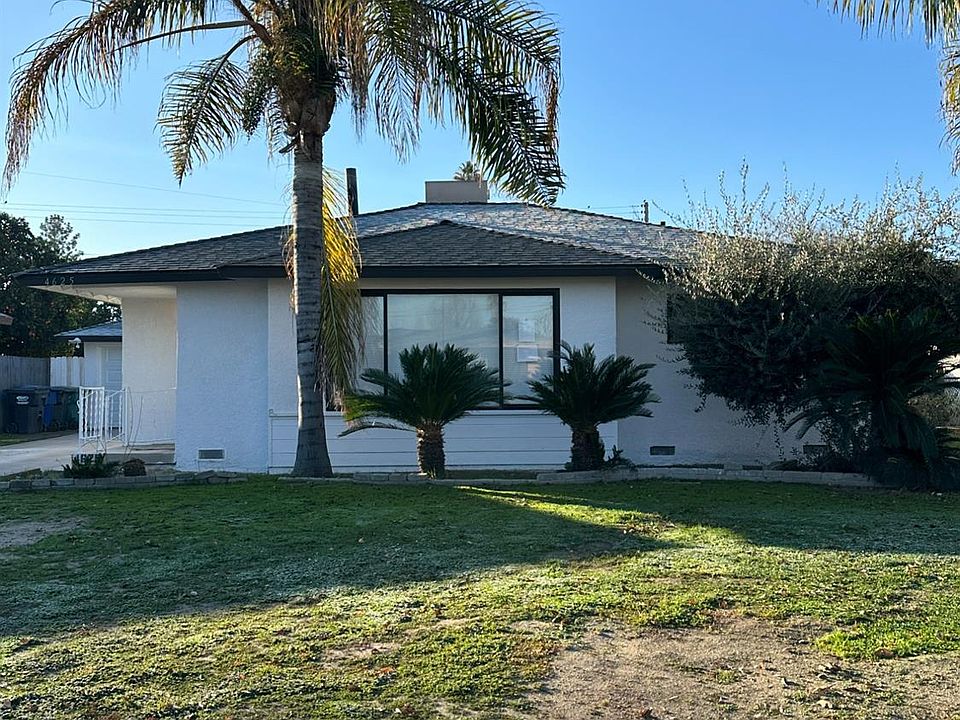 This beautiful 3-bedroom home with a detached studio offers an inviting blend of style and functionality. It features fresh exterior paint, a brand-new roof, a modern garage door, and elegant two-tone interior paint. The kitchen boasts upgraded cabinets, a new sink and faucet, and luxurious flooring, while the bedrooms include plush new carpeting and ample closet space. The bathroom is designed with a tiled shower, an updated vanity, modern lighting, and new flooring. Additionally, the detached studio, complete with its own bathroom, is perfect for use as an office. The spacious backyard is ideal for entertaining and creating lasting memories. This is a must see.