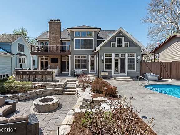 One of a kind property 3 blocks to Downtown Downers Grove is the ultimate in luxury living with beautiful finishes and updates. This spectacular home is 7,000 sq ft with 5-bedrooms, 4 full and 2 half bathrooms, 4-car heated garage, and an amazing backyard with an in-ground pool and spa. With four finished levels, this home is perfect for entertaining guests and hosting large gatherings. The open floor plan features spacious living areas with hardwood floors, three fireplaces, and floor to ceiling windows. The newly remodeled kitchen is a chef's dream, with quartz counter tops, stainless appliances, large walk-in pantry and an oversized island. The kitchen is open to the family room making this area the hub of the home. There are two primary suites, one on the 1st level and another on the 2nd level offering plenty of space to unwind and relax. Upstairs boasts 4 bedrooms including the expansive primary suite, a private oasis with abundant natural light, fireplace, two walk-in closets, comfortable seating and an indulgent bathroom with soaking tub, separate shower and dual sinks. Kick off your day sipping your coffee on the balcony overlooking your very own backyard resort. The primary suite on the first level serves as a great room with double doors to the patio and pool. An additional ensuite bedroom on the second level has a large walk-in closet and private bathroom. The finished 3rd floor bonus space is ideal for recreation or guests. The completely remodeled basement boasts an impressive bar, home theater and home gym. First floor mudroom/laundry room with new washer/dryer. In addition to the amazing indoor living spaces, this home also provides an incredible outdoor oasis that is sure to impress. You will love the show-stopping grounds, which include an in-ground heated pool, waterfall spa, gazebo, outdoor kitchen, bonfire terrace, fully fenced yard and professional landscaping. Ideal location close to Downtown Downers Grove, Washington Park, top rated schools and train station!