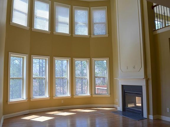 Waterfront lot on culdesac!Lg bsmnt home w/open flr plan featuring 2-sty foyer & liv rm w/2-sty curved wall of windows.See-thru fp in great rm warms the kit w/lg island,granite countertops,SS appls,walk-in pantry & lg brkfst rm.Master on main w/sit rm & luxury bath.Hrdwds in main lvl living areas.Upstairs 2 lg lofts,half bath a bdrm ste w/full bath & 2 secondary bdrms w/hall bath.Unfinished bsmnt w/tall ceilings & engineered joists w/mechanicals incorporated so you can finish w/flat ceilings.Practically all rooms & bsmnt have a view of the lake at the back of the home.