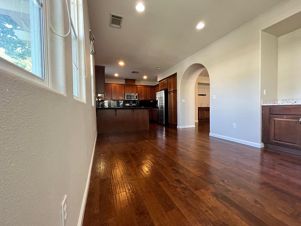 Hardwood floors, newly replaced carpet, fresh interior paint, and custom window treatments