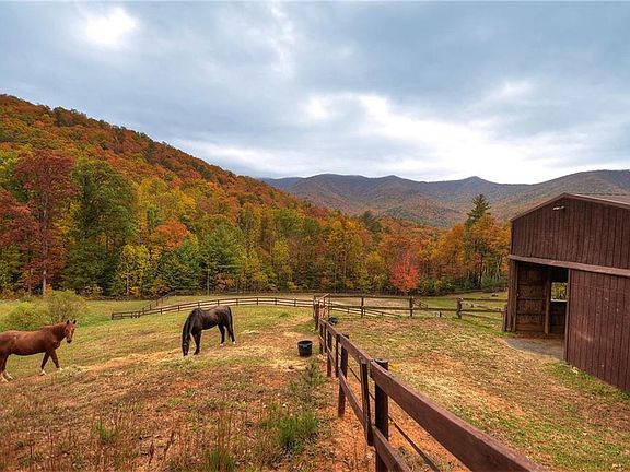 Hidden gem! Entirely private, luxurious hideaway nestled against USFS. Captivating views over 25 acres, forest & creek. 2 fenced pastures, 5 stall barn, fenced riding arena. Separate guest log cabin. Main home:dramatic 12' ceilings. Custom cabinetry throughout. Open-plan living area soars 24'. Impeccable kitchen w/ Viking range, butler's pantry. Wet bars on all 3 levels. Wrap-around porches. 3 fps w/ gas starters, including in 2-room master bdrm suite. Deep-soak tub with TV, walk-in sauna, central vac. Sun-filled view GA's tallest mtn. For Info TEXT HN14041 to 843367