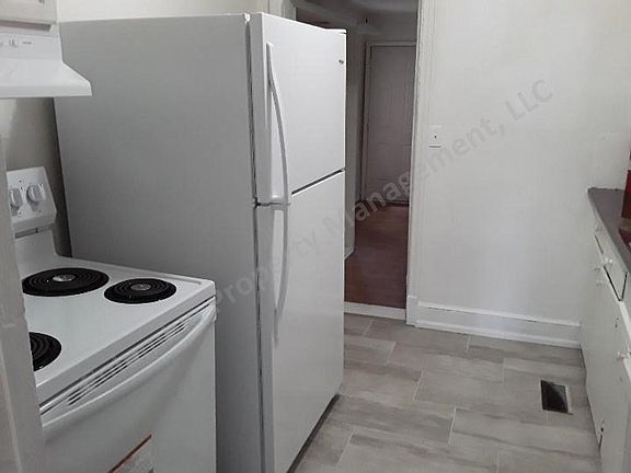 Two bedrooms, one bathroom, living room, kitchen with refrigerator and stove. Washer and dryer connections. Central heat and air. Hardwood floors. Pet restrictions. Off-street parking. Storage shed. Tenants responsible for all utilities and yard maintenance.