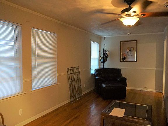 4625 Pendleton is new on the market and is priced to SELL! Just steps away from Jefferson Elementary and in the Rider district! The large, covered front porch catches the morning breeze. The entry has a coat closet and chair railing. There is hardwood flooring which spill into the living room. There is an arched opening showcasing this room. It has crown moulding and chair railing. The kitchen has lots of countertops, refrigerator, gas stove, and a dishwasher. There is a window above the stainless sinks overlooking the backyard. There is a dining area at the end of the kitchen which has a patio door to the backyard. The master bedroom has a private door to the covered patio. The master bath has a tile floor, pedestal sink, and a shower. The guest bath is large and has a tub/shower with tile surround, marble sink and vanity, and a large linen cabinet. There are 2 additional bedrooms. The privacy fenced backyard is large and has a covered patio, carport which could be completed into a building, and an inground gunite pool which needs some work. The backyard has various trees and shrubs and very inviting. The 2-car garage has built-in shelving and storage. Home is being sold “as is”. Owner is not interested in making any repairs. This would make a great flip or rental property. For more information or to schedule a showing, call The Sandra Wortham Team at 940-264-4663 or 940-733-6080. For recorded information 1-800-634-0528 enter 014272.