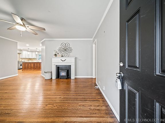 Fall in love with this spectacular and charming 3 bedroom 2 bathroom home located in the heart of Tulsa! This Brookside bungalow features a spacious living room, beautifully refinished hardwood floors throughout and completely remodeled master bathroom! Updated kitchen with large island, stainless steel appliances including oversized Viking gas stove, ample storage space and pantry with coffee bar. Garage is completed with epoxy floors, washer dryer hookups, and sleek wall mounted opener. Beautiful patio deck overlooks the large backyard with storage shed. Conveniently located near schools, parks, and shopping.