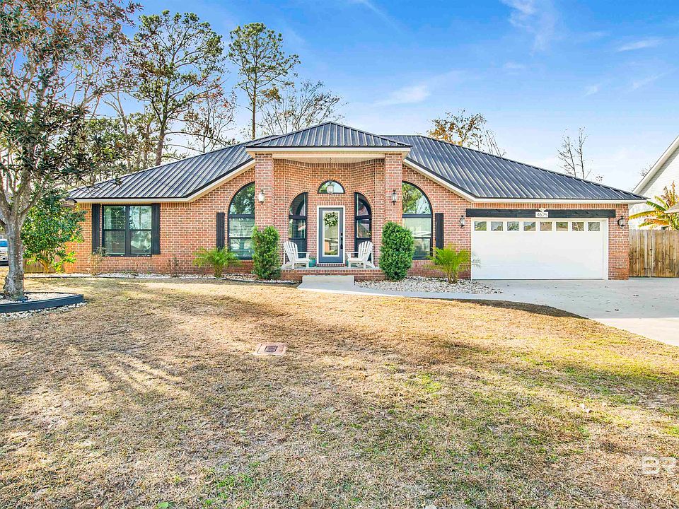Introducing this exquisite 4-bedroom, 2 1/2-bath luxury home nestled in the prestigious Captain's Cove. This fully renovated residence boasts a stunning gourmet kitchen, perfect for culinary enthusiasts and entertaining guests. The sleek and modern design extends throughout the entire home, with high-end features including a metal roof (installed in 2020), sleek PGT impact-rated black windows and doors, porcelain tile flooring throughout, an HVAC system (upgraded in 2019), and an expansive driveway. The attention to detail is evident in every corner, creating a harmonious blend of style and functionality. Natural light floods the living spaces, enhancing the bright and airy ambiance. One of the highlights of this property is the inviting sunroom, providing a tranquil retreat that seamlessly connects indoor and outdoor living. Step outside to discover a beautiful outdoor space adorned with fruit trees and blueberry bushes, creating a private oasis for relaxation or family gatherings. Captain's Cove provides residents with access to a community pool, a convenient boat ramp into the Intracoastal Waterway (ICW), and a boat house/pier complete with a fish-cleaning table. Perfectly situated, this home allows you to fully enjoy the offerings of Orange Beach and holds a SILVER qualification. This Captain's Cove gem is not just a home; it's a statement of elegance and modern living. Interested buyers can contact me or their favorite realtor to schedule a showing. All information deemed accurate, but not guaranteed. Buyer or buyer's agent(s) to verify all measurements and any other listing information that they deem important to the buyer's satisfaction during inspection contingency period.
