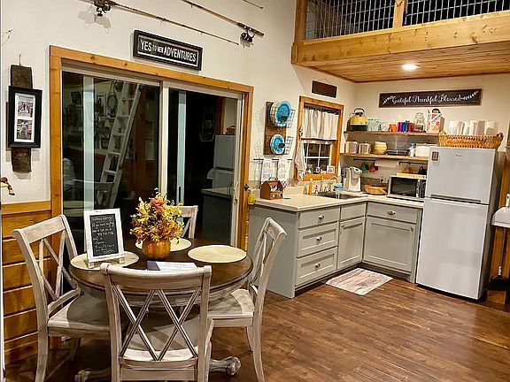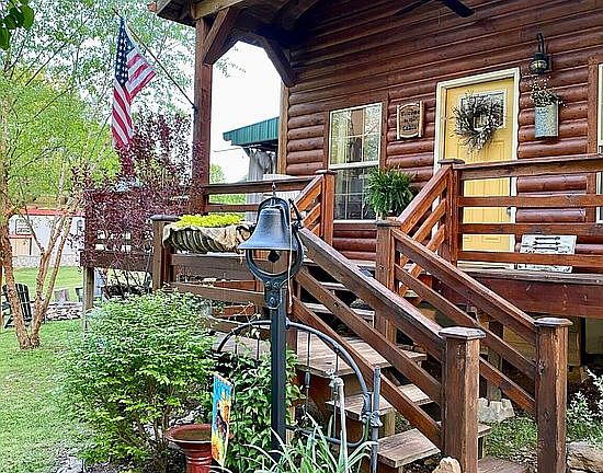 This 2 bedroom, 1 bath home sits inside a small private gated RV park, steps from the Illinois River, in rural Adair County, Oklahoma. The home includes 2 additional RV sized lots with RV hookups making a total of 1/4 of an acre. There is a community pool and clubhouse. It is currently generating revenue as an Airbnb but is also used as a family vacation home. This cabin comes fully furnished, ready for Airbnb guests or full time living. This rustic cabin boasts vaulted ceilings making it feel more spacious. Bottom floor is approximately 500 sq ft that includes a private bedroom, 3/4 bath, open concept kitchen and dining areas. The 209 sq ft sleeping loft includes 2 custom built in cabinets for lots of storage. The large wrap around porch covers 3 sides of the cabin. A new tankless hot water heater and all new pex plumbing were installed approximately 1 year ago. Brand new electric range just installed. This property is approximately 100 yards to the beautiful Illinois River making easy access to kayaking, fishing or swimming in the local "swim hole". This cabin is mostly elevated and sits approximately 5 feet above ground level, protecting it from high water. This is turn key ready to use as an Airbnb or full time living.