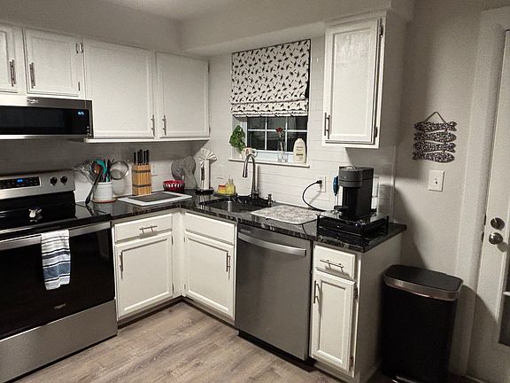 Corner unit with lots of natural light. Unfurnished (pics are before owner's move-out). Unit completely updated in 2021 with new flooring, plantation shutters, beautiful bathroom with walk in shower, new kitchen appliances and fresh paint throughout. Huge walk in pantry in kitchen with lots of shelves. Both bedrooms are good sized with big closets and new stylish closet doors. Full size washer and dryer in unit. Excellent air conditioning system. Fenced in backyard with gate opening out into green space. Very very quiet area close to parking lot but far enough away so there's no noise. Renter pays for electricity, cable. Renters insurance is required. Owner pays HOA which includes water.