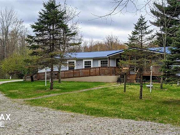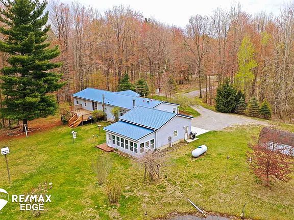 This 4 bedroom, 3 bathroom, home sits on a secluded & wooded 11.88 acres and features a pond, new steel roof, first floor master bedroom suite, living room & family rooms, three seasons room off the back of the garage, kitchen appliances included, attached 1.5 car garage with work benches, full basement with 9 foot ceilings and egress window with plenty of storage, central air, first floor laundry, storage shed, on a paved road, one year home warranty included, and more!