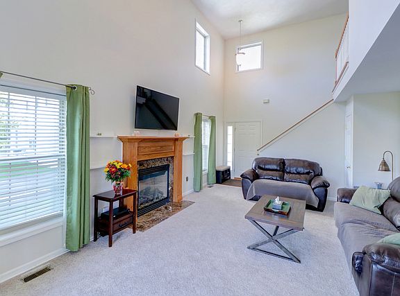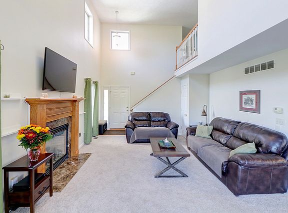 Great Cul-De Sac Location. Wide-open space in backyard, is near walking paths, parks and common pond. Popular floor plan with Cathedral ceiling in living room. Gas log fireplace in living room with sliding glass door to sun room. Tile floor in kitchen. All kitchen appliances included with washer and dryer. Basement is finished with additional living space and storage. House is located near the University of Illinois, YMCA, and Carle at the Fields. Easy Interstate access and on city bus line. PICTURES ARE OF SIMILAR UNIT.