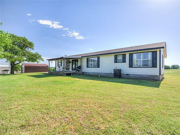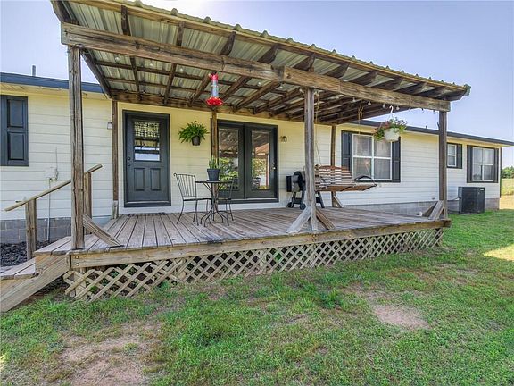 Enjoy a peaceful rural homestead on your very own private 12 acre farm (mol) with 3 bedroom home and massive 40x60 insulated shop building. This three bedroom, two bathroom home features an adorable kitchen with eat-in breakfast bar, an abundance of cabinetry & storage and an adjoining dining area. The oversized living room has space for all your living room furniture, as well as an office setup. The primary bedroom suite affords true privacy residing on its own end of the home. The master bathroom has a double vanity, separate walk in shower and relaxing jetted corner tub! On the opposite end of the home, two secondary bedrooms share an additional full bathroom. French doors look out over the back patio where you'll spend evenings swinging with your favorite person and your favorite beverage watching those incredible OKLA sunsets! Carport is a full two car capacity and the huge shop building is ready for all of your projects and farm needs. Roof was replaced in 2021.