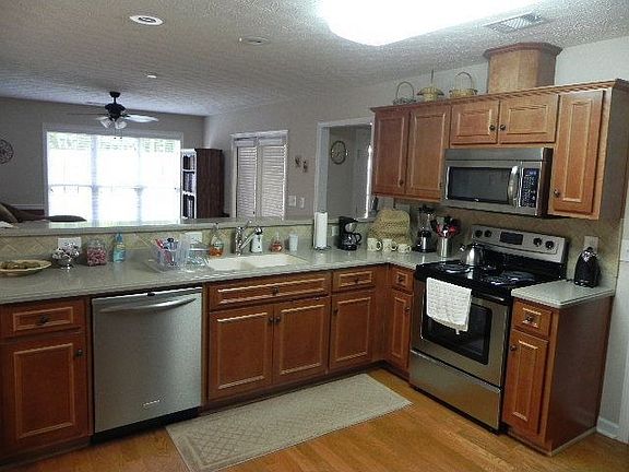 BRIGHT AND CLEAN, THIS FOUR BEDROOM, THREE BATH, ONE LEVEL HOME IS MOVE-IN READY.SPACIOUS GREATROOM IS OPEN TO THE DINING ROOM WHICH HAS HARDWOOD FLOORS WHICH ALSO EXTEND INTO THE KITCHEN AND KEEPING ROOM.YOUR FAMILY WILL LOVE GATHERING IN THE KITCHEN AND ADJOINING KEEPING ROOM WITH A CASUAL DINING AREA WHICH OPENS TO A SIDE PORCH FOR COOKING OUT OR SITTING WITH FRIENDS AND FAMILY.CORIAN COUNTERTOPS PLUS A TUMBLED MARBLE BACKSPLASH AND ABUNDANT CABINETS & COUNTERTOPS MAKE THIS A DREAM KITCHEN
