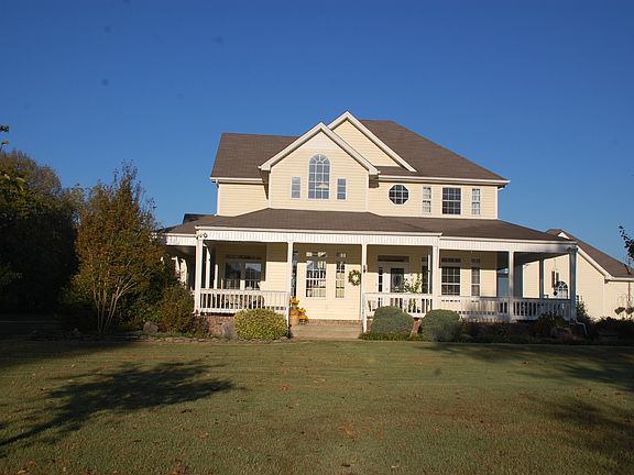 Farmhouse feel, yet close to shopping, schools and interstate! Wrap around porch, , Great Room with volume ceiling and wood burning stove, master on main level, formal dining room, roomy kitchen with breakfast room, upstairs bedrooms share a jack n jill bath. Detached studio/in-law/guest house with full bath. Above gound pool. Oversized detached garage/shop. Wood Playgym. This home is set back off the road on almost 6 acres. One year HMS home warranty.