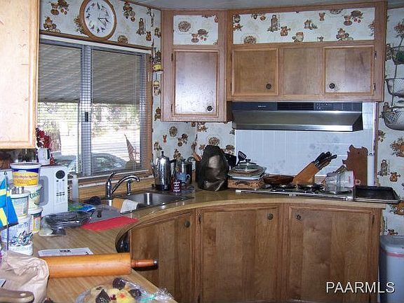 Handyman work needed on addition. Doublewide in good shape on .21 Ac lot. 3 Br, 2 bath has a nice kitchen with gas stove top and double ovens and breakfast bar. Formal dining room with hutch. Large living & family rooms. The game room has a wood stove & A/C unit. Enclosed back patio and workshop not heated(approximately 800 Sf) additions needs some handyman work. Covered patio in front length of home. Has lots of storage. Newer SxS refrigerator can be purchased. 2 yr old hot water heater.