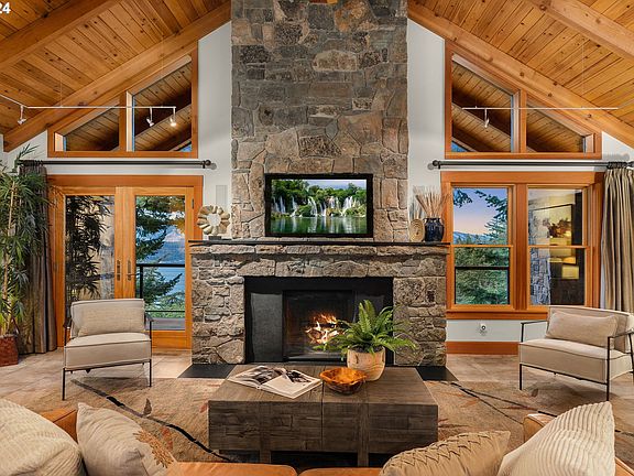 Discover the home you've always envisioned! Nestled on a sprawling 5-acre bluff in the heart of Hood River, this luxurious 5168-square-foot residence epitomizes elegance and sophistication. Designed for the discerning homeowner, this estate offers unparalleled panoramic views of the Columbia River and the majestic hills of Washington. The main residence, with its 4 bedrooms and 4.5 bathrooms, boasts exquisite architectural details, expansive living spaces, and high-end finishes throughout. A true entertainer’s dream, the home features a grand entryway, vaulted ceilings, a gourmet kitchen with a substantial cook island, and a spacious Primary Suite, complete with floor-to-ceiling windows to capture the breathtaking river views. For guests or extended family, a beautifully appointed approximately 900-square-foot studio guest suite with a kitchenette and full bathroom above the detached garage/shop offers both privacy and comfort. The property also includes a second detached garage, RV parking, and a full-size tennis court, perfect for sports enthusiasts. The expansive wraparound Ipe deck and large concrete patios are designed for relaxation, featuring a gas fireplace, a hot tub, and an outdoor shower. Meander through numerous trails across the property, surrounded by both manicured and natural landscaping, all while enjoying the privacy of your surroundings. This exceptional home seamlessly blends luxury with natural beauty, offering a tranquil retreat just a short drive from local amenities. Experience the pinnacle of grandeur and the serenity of Hood River living in this magnificent estate.