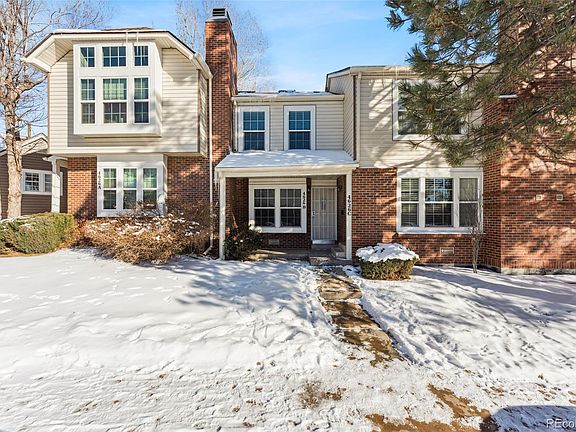 Back on the market due to issues with Buyer financing! This townhome is situated in a prime spot across from the community pool, volleyball court and open space and is part of the highly regarded Cherry Creek School District! The main level features a living room with a wood-burning fireplace, hardwood floors and cozy window seat. The eat-in kitchen includes granite countertops, a garden window perfect for your herbs and plants, tile backsplash, pantry, laundry closet and access to a fenced backyard with a private patio and storage room. The sunny back patio backs to a path that leads to Sagebrush Park with over 17 acres of space for you to enjoy! A convenient half bathroom and multiple closets for storage complete the main floor. Upstairs, two ensuite bedrooms feature vaulted ceilings and skylights that bring in natural light. The secondary bedroom offers mountain views and overlooks the pool and open space. Freshly installed carpet adds comfort throughout the upper level. The community includes a clubhouse, pool, and volleyball court. Parking is easy with one reserved space, a guest pass, and additional open parking across from the unit at the clubhouse. Close by is Cherry Creek State Park- a 4,200 acre recreation haven for campers, bicyclists, equestrians, hikers and more! Quick access to Forest Coffee in the AM and The Angry Clover in the PM! This home is a great opportunity to enjoy convenience and amenities.