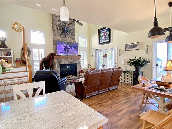 Rebuilt Custom home from the foundation up with every upgrade available.....plus no flood insurance .Three bedrooms and 2 1/2 baths plus loft with overlook to low/level ....all stainless appliances and island also a balcony off upper level with a million dollar water view plus private pier with 2 lift and multiple boat slips and a 2 car oversized garage.....This home has all you would ever want and the property itself is outstanding......won't last long