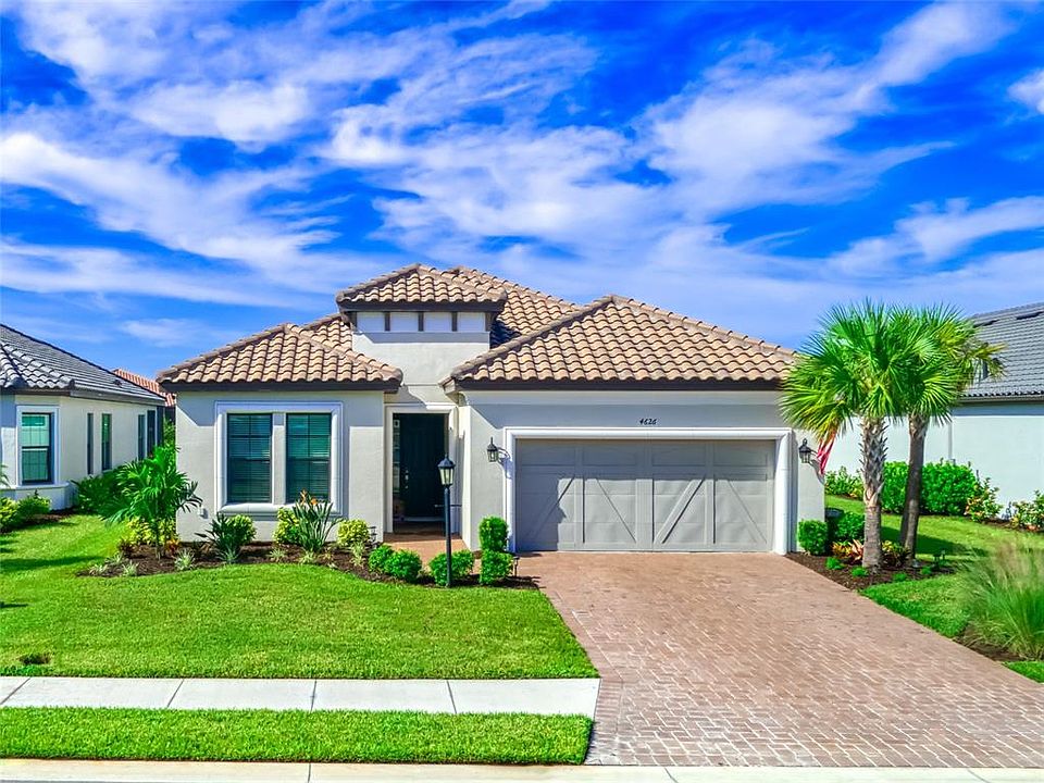 STUNNING & PERFECTLY-DESIGNED Open Floor Plan features ABUNDANT LIVING SPACE- 1,923sf w/ 2 Large Private Bedrooms AND a Large Den/Office/Bedroom. Welcome to the luxury Resort Community of Esplanade Azario. Entering the Foyer, you are welcomed by impressive 10' Tray Ceilings, 8' Doors, Crown Molding & Wall of Sliding Doors leading to a SPACIOUS COVERED LANAI. You will appreciate the long list of UPGRADES, including Chef's Gourmet Kitchen, GE Profile Stainless Steel Appliances, 5-burner Gas Stove, upgraded 42" soft-close wood Cabinets w/sliding shelves, custom glass Backsplash & Walk-In Pantry. Kitchen Island features casual Breakfast Bar w/ front Cabinets, upgraded Quartz Counter Tops & large Farm Sink. Adjacent Dining Room is the perfect space for sunlit Casual or Formal Dining. Stylish Ceramic Tile Floors w/ 5 1/2" baseboards enhance the living areas & Recessed Lights bring radiance to every room. Two Customized & Upgraded Bathrooms feature Towel Warmer Racks, Listello Tile & Quartz Counters. This bright & sunny home is perfect for Florida Indoor/Outdoor Living. Sip morning coffee & view amazing evening sunsets on Extended & Covered Lanai w/ desirable SW exposure & PEACEFUL WATER VIEWS. Oversized Lanai features Triple Pocket Sliders, Paver floor, Outdoor Kitchen rough-in, Recessed Lights, Fan pre-wires & TV connection. At the end of an active day, relax in the luxurious Master Suite w/ a Tray Ceiling, Bay Window seating area & calming En-suite, Spa-like Bathroom. A Frameless Glass Dual-Entry Walk-In Shower extends the length of the room. Extra space for clothing & leisure items in the large Walk-In Master Closet! Sizeable Laundry Room w/ large capacity Washer/Dryer & Utility Sink. Convienent Drop Zone at the Garage entryway. The 4’ EXTENDED 2-Car GARAGE w/ Epoxy Floor provides abundant storage space. Valuable ENERGY SAVING FEATURES include a Tankless Gas Water Heater w/ Recirculating Pump (Instant Hot Water), Insulated Garage Door, Radiant Barrier in the Attic, Core Fill Insulation in all Interior Walls & Room Darkening/Insulating Blinds. Curb Appeal! The attractive exterior features Paver Driveway/Walkway & Tile Roof. Live on a quiet street, w/ maturing landscape & NO surrounding construction. LUXURY RESORT LIFESTYLE - Azario is a highly sought-after Gated Community that is Amenity-Rich & Maintenance-Free for a low HOA Fee of $351/mo! AMAZING COMMUNITY AMENITIES: Lagoon-Style Heated Pool & Spa, Bahama Grille/Bar, 18-Hole Championship Golf Course, Aqua Driving Range, Golf Pro Shop, 16 Lighted Pickle Ball Courts, 6 Lighted HarTru Tennis Courts, 4 Bocce Courts, Clubhouse w/ State-of-Art Fitness Center, Exercise Classes, Luxurious Spa/Wellness Center, Hair Salon & Coffee Cafe - surrounded by 150 miles of Trails in picturesque Lakewood Ranch. Annual Golf memberships available for residents. Enjoy Concierge Services, activities designed by Onsite Lifestyle Director & (coming soon) a 15,000sf Culinary Center w/ fine dining, cooking classes & wine events. Just a short drive to award-winning Gulf Beaches or Sarasota Polo Club matches. Close to I-75, UTC Shopping Mall, Restaurants & Lakewood Ranch Main Street activities, concerts, festivals & farmers’ market. Your Calendar & your Life will be FULL! Live in a Tropical Paradise Today! Room Feature: Linen Closet In Bath (Primary Bedroom).