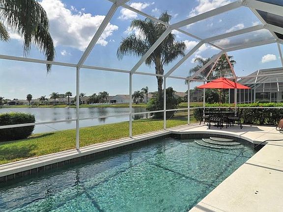 This lakefront paradise in Sabal Harbour features an open floor plan, high ceilings, and a large heated pool with a refurbished cage - with enough room for the entire family to spread out and relax. The kitchen and breakfast nook compliment the large and bright dining and living room, with its sliding glass doors with views of the pool and pond beyond. The split floorplan allows for the guests to have some privacy of their own, with the master suite on one side of the house and the other bedrooms on the other side of the house. Built by Pulte Homes in 2002 in a community with NO CDD fees or rental restrictions, this house is offered turnkey furnished for the next owner to use as the ideal seasonal or vacation rental property. This is a great neighborhood, located close to SR 70, shopping, dining, schools, entertainment venues, and is within 15-20 minutes from Anna Maria Island. The location is quiet & family friendly, with incredible resort-like features including tennis courts, a community pool & playground. Stop by to check out why Sabal Harbour is such a sought after community, with its low HOA fees, community amenities, and central location!