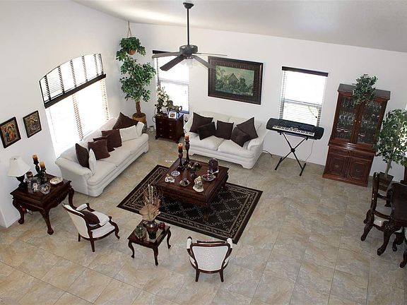 Incredible home! Come in & you'll feel it's majestic size! Everything on this home has been upgraded & oversized. Extended from it's original floorplan features 5 very well sized bedrooms & 3 bath, impressive tile floors throughout the first floor, huge living room & family room with surround sound system & cozy fireplace, a great bar area & 1 large bedroom downstairs with access to a full bath to be used as another master suite den/office. Heated pool & Jacuzzi in meticulously landscaped large backyard.