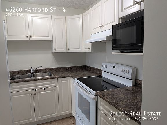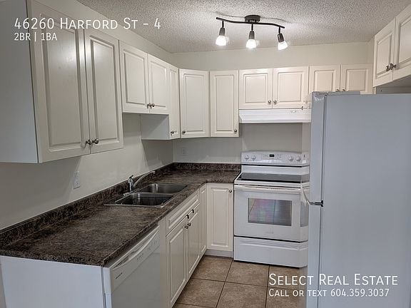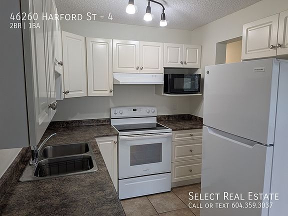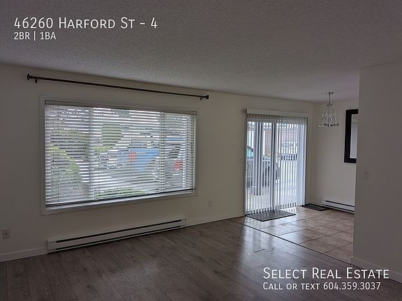 Address: Unit 4 - 46260 Harford Street, Chilliwack, BC, V2P 2W3 Date Available: June 1st, 2025 Bright & Peaceful End Unit Steps from District 1881 and Downtown Living! This charming end unit blends comfort with convenience in one of Chilliwack's most walkable locations. Featuring a spacious primary bedroom (14'3" x 10'11"), updated flooring, and newer windows and patio door, the interior is freshly painted and opens seamlessly to a covered patio perfect for morning coffee or evening unwinding. With only one shared wall, you'll enjoy exceptional privacy and a peaceful atmosphere. Nestled at the end of a quiet no-through street, this home is just steps from schools, shops, and recreation, and a short stroll to the vibrant District 1881 and downtown Chilliwack's dining, boutiques, and entertainment. Experience the perfect blend of tranquility and urban lifestyle. Lease Details Lease duration: 1 Year Deposit: Months Rent. Pet Deposit (if applicable): N/A No Smoking Property Details Bed: 2 Bath: 1 SQFT: 860 Pet Details Pets(Yes/No): No - as per Strata Type Allowed: None Number: 0 Size Restriction: N/A Exterior Details BBQs allowed(yes/no): No Parking type and how many: 1 Space Yard Usage: Shared Yard Space Yard fully fenced: No Shed Or Shop Usage: No Appliances Included Fridge: Yes Range: Yes Dishwasher: Yes Microwave: Yes Washer/Dryer: Yes Shared Laundry: No Pay Laundry: No Fireplace: No Air conditioner: No Standalone freezer: No Utilities Gas: 100% Tenant Hydro: 100% Tenant Internet/Cable: 100% Tenant Water, Sewer, Garbage: 0% Tenant Utility Type Heat Source: Electric Baseboard Septic/Sewer: Sewer Water Source: City Tenant Responsible for Septic pumping: No Strata Age Restriction: N/A Storage Locker: N/A Move-in/out Fee: $100 Move In / $100 Move Out Move in Scheduling: 2 Days in Advance