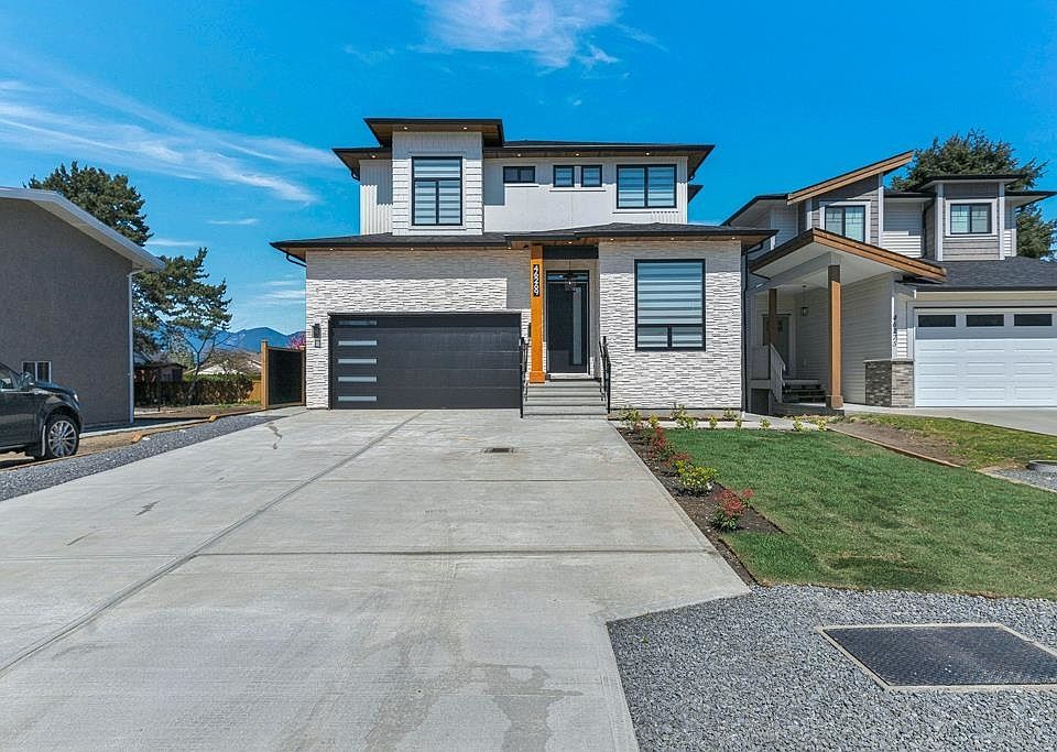 Brand New 3-Storey Custom Home in Sardis! Discover over 3,600 sq. ft. of luxury living in this beautifully crafted home featuring a 2-bedroom legal suite and a spacious theater/rec room with a powder bath. The main floor offers a bright living room, family room with gas fireplace, gourmet kitchen with granite countertops, Large pantry, and a sundeck with built-in speakers. Upstairs 4 bedrooms, 3 full bathrooms including 2 primary suites, all with cozy carpeting. Enjoy premium features like air conditioning, stainless steel appliances, glass railings, zebra blinds, and a landscaped yard. Separate electricity meter for basement Double garage with high ceilings and an RV-friendly driveway. Close to schools, golf, shopping, and mountain views. A must-see property!