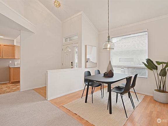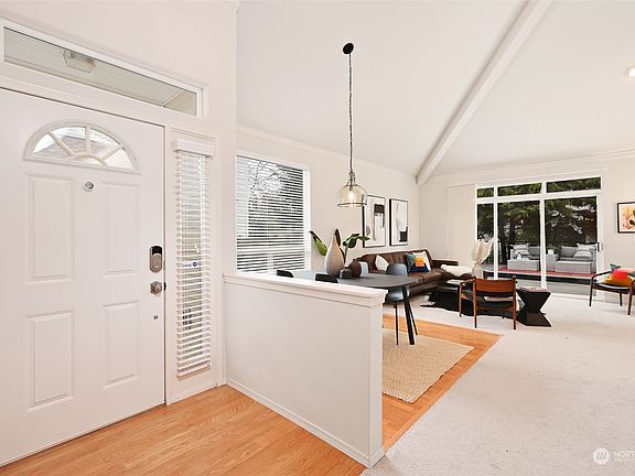This is a very dramatic and gracious townhouse. Step into vaulted open formal living & dining rooms that lead seamlessly to an entertainer's 2 tiered deck. Across the back of the deck & yard is a Native Growth Protection Area creating privacy and a wonderful buffer. The primary bedroom on the main which looks out on the buffer, is private, generously proportioned and very well equipped with a walk in closet and a soaking tub. Upstairs aside from the two lovely south facing bedrooms is a great loft space that works well as a home office or fun hangout spot. Gather at the kitchen table with friends over coffee. The kitchen faces SW & gathers in tons of light. This home is in great shape & is ready to offer peace of mind for many years to come