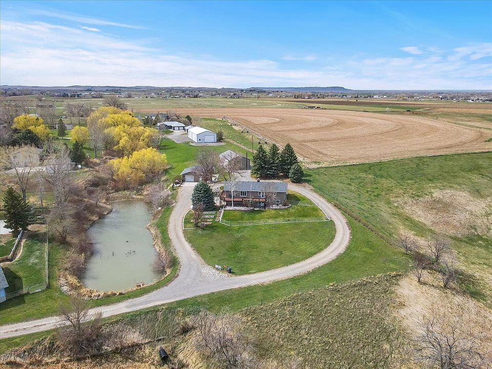 Motivated Sellers. This beautiful home sits on the end of a private road offering space, serenity, and stunning surroundings. Step into a warm and inviting living room centered around a striking grand fireplace, which flows seamlessly into an open-concept kitchen designed for effortless entertaining. With four spacious bedrooms and three full bathrooms, this home delivers both comfort and convenience. A 30x50 detached shop with 12x12 doors provides the perfect space for RVs or large equipment. Additionally, an oversized 26x 30 two-car detached garage is ideal for projects, hobbies, or extra storage, all while keeping the tuck-under two-car garage neat and organized. Outside, unwind by your own private pond, sip your morning coffee on the deck, and take in Montana’s breathtaking skies. The expansive, flat yard offers year-round enjoyment Info deemed reliable but not guaranteed. Buyer/buyer agent to verify.