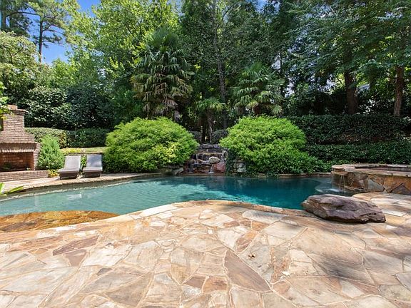 Beautiful brick home w/3 car garage ideally located on gorgeous corner lot in sheltered neighborhood minutes to Chastain Park and adjacent to Buckhead & Brookhaven. Professionally landscaped private backyard with heated salt water pebble tec pool w/spa, waterfall and outdoor fireplace. Natural light filled great room with coffered ceiling and wall of windows offering breathtaking views of outdoor living area. This fabulous home features a chef's kitchen with 5 Star range with double oven, Sub-Zero refrigerator, Bosch dishwasher, custom cabinetry and eating area. Upstairs features over sized owner's suite with sitting area and fireplace, spa like bath with double vanities, 3 additional bedrooms with en suite baths and a large bonus room. Additional guest bedroom with en suite bath on main. Finished walkout basement, with half bath (easily changed to full), includes media, game and gym area. Home is conveniently located to outdoor recreation, shopping and entertainment. Easy access to 400.