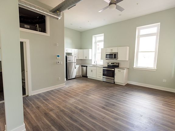 Inside every unit, you'll find granite countertops, stainless steel appliances, handcrafted cabinetry, and luxury vinyl or restored hardwood floors. Soaring high ceilings, towering oversized windows, and abundant natural light showcase the building's original architectural character, from exposed masonry details to the refined craftsmanship of its historic framework.