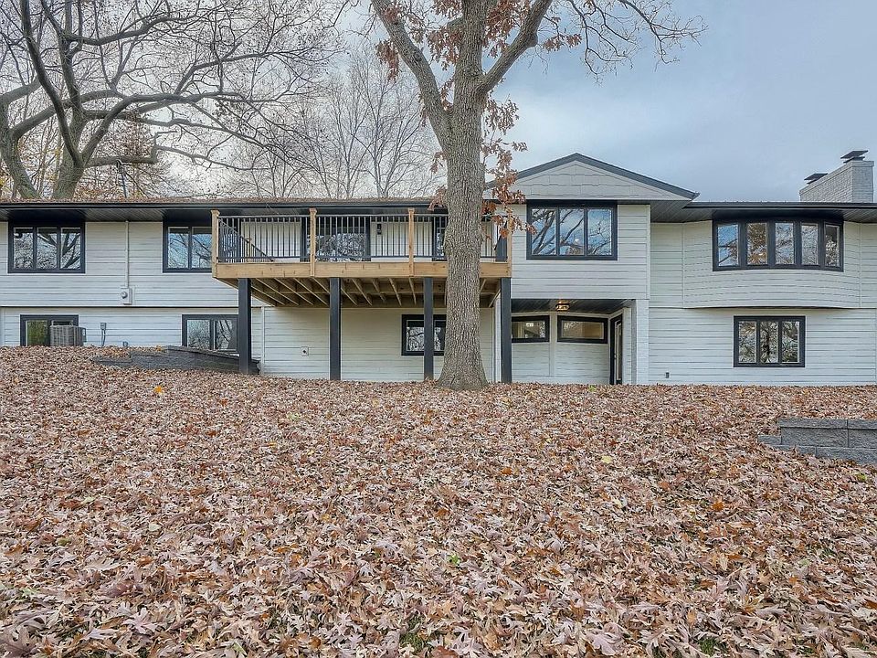 Gorgeous & modern 4,500+ sq ft 5-bedroom home beautifully renovated by Pillai Builders. New roof, windows & doors. Open concept main level with wood floors, office, custom kitchen with new stainless appliances, wine fridge, large island and access to the balcony deck. Spacious main level primary bedroom with spa-like ensuite bath and 1 standard closet & 2 walk-in closets complete with custom built-ins. In the lower level you'll find a family room with fireplace, large bonus room perfect for recreation & entertaining, additional guest bedroom suite with full bath and a laundry room w/new washer & dryer. New concrete driveway, sidewalks, back patio & deck along with new plumbing & electrical, HVAC and water heater. 3-car garage w/storage shed under the 3rd stall. Enjoy private wooded backyard in this quiet neighborhood, all while still being close to all Minnetonka has to offer!