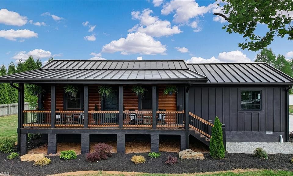 Exceptional cabin in the heart of Kernersville. Large lot with oversized driveway including extra wide parking pad. Home has been renovated top to bottom including addition. New primary bedroom has walk in closet, custom lg television with remote control for adjustable bracket. Primary bath has double vanity, soaking tub, designer tile shower, high end fixtures and Toto toilet. Vaulted ceiling in living room and kitchen give oversized open floor plan feel. Kitchen leads out to the charming seating area to include hot tub. Let's talk about the fabulous detached garage/workshop which could easily hold 3 cars. Far side of garage could hold an additional 2 cars. House has new metal roof, garage has new architectural roof, sealed crawlspace and metal storage units to remain.